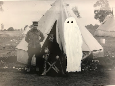 Artist Statement: This is the final week that we are working on replicating our model artists images. The women who I have used to replicate her techniques is named Angela Deane. She took images of groups of people and then singled out a few people in each picture and painted a ghost figure on top of them. This week my photo theme surrounded the idea of World War I from different aspect, it was very eerie and mysterious which I found very interesting. I really loved creating these images because each week had a unique vibe and tone to them which I loved. I also got to experiment with painting because I hadn't done to much of that before this project. Over all I had a really great time and I can't way scan all pictures and make a final group next week.
